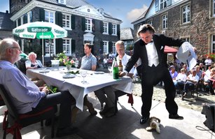 Viel Spaß und viel Sonnenschein hatten unsere Zuschauer an Himmelfahrt auf dem Stiftsplatz. Unser Theater, vertreten durch Indra Janorschke und Dario Weberg, beteiligte sich auch 2011 wieder an der Herdecker Maiwoche. Verschiedene Sketche von Loriot standen auf dem Programm und fanden ein begeistertes Publikum.
